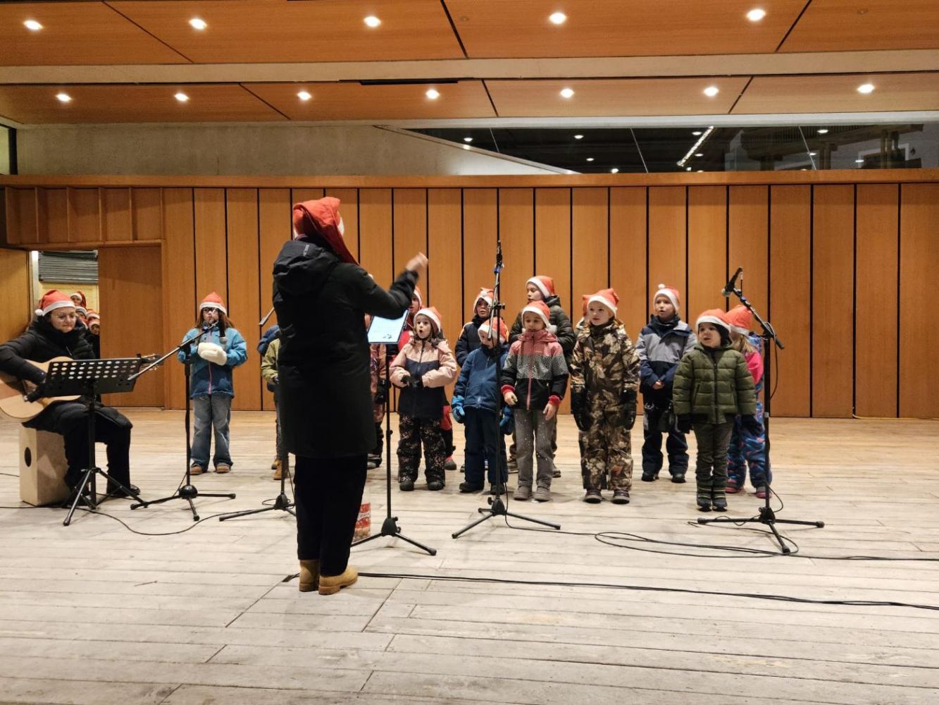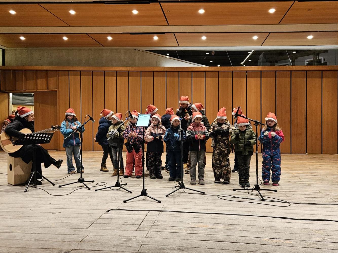 Ein weiterer Höhepunkt war das gemeinsame Singen in Ischgl. Zusammen mit der Volksschule Ischgl präsentierten die Kinder ein abwechslungsreiches Adventprogramm beim Adventmarkt und zeigten, wie gut schulübergreifende Zusammenarbeit funktionieren kann.