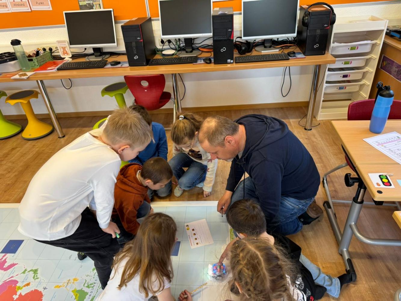 Die Schülerinnen und Schüler der 1. und 2. Klasse tauchten mit den Bee Bots in die Welt des Programmierens ein. Mit viel Begeisterung programmierten sie die kleinen Roboter und merkten schnell, wie wichtig genaues Denken und Teamarbeit sind. Später lernten sie außerdem Cody 21 kennen und konnten auch hier spielerisch ihre digitalen Kompetenzen erweitern.