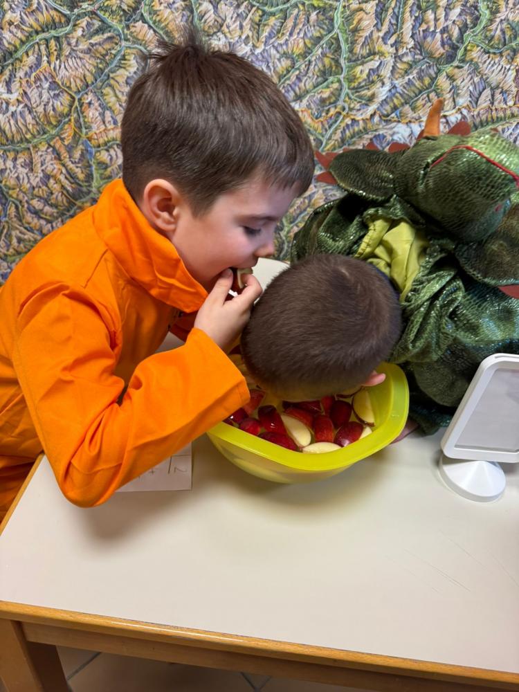 Auf dem Programm standen lustige Spiele wie Äpfel tauchen oder „Schoko mit Wintersachen“ – wer eine Sechs würfelte, durfte nicht nur schneiden, sondern auch naschen. Außerdem wurde fleißig gemalt und gebastelt, sodass richtig kreative Werke entstanden.