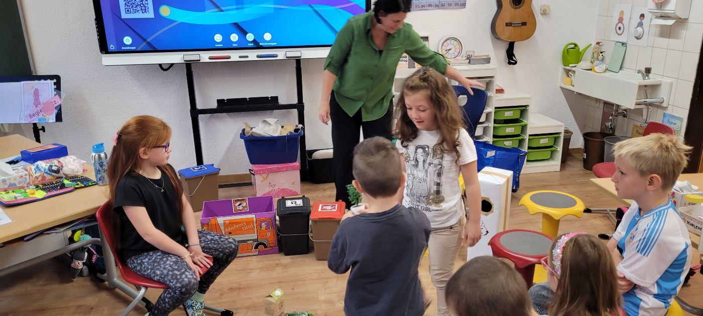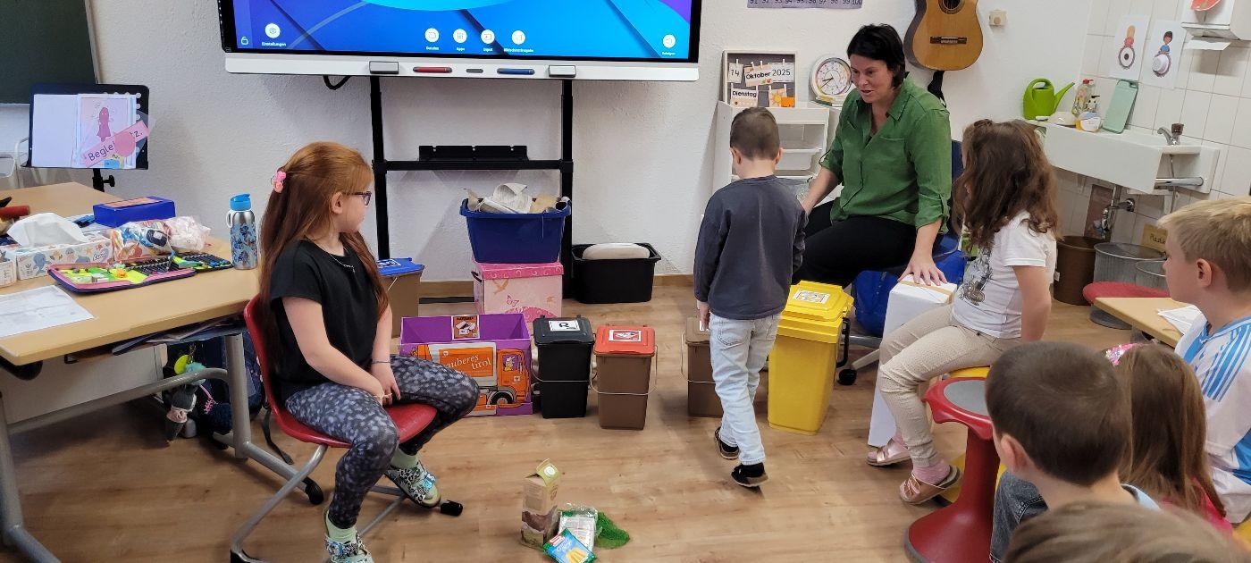 Im Anschluss konnten die Kinder ihr Wissen gleich in die Praxis umsetzen: Verschiedene Abfälle wurden gemeinsam sortiert und den richtigen Mülltonnen zugeordnet. Die Aktion hat nicht nur Spaß gemacht, sondern auch das Bewusstsein für einen verantwortungsvollen Umgang mit Ressourcen gestärkt.